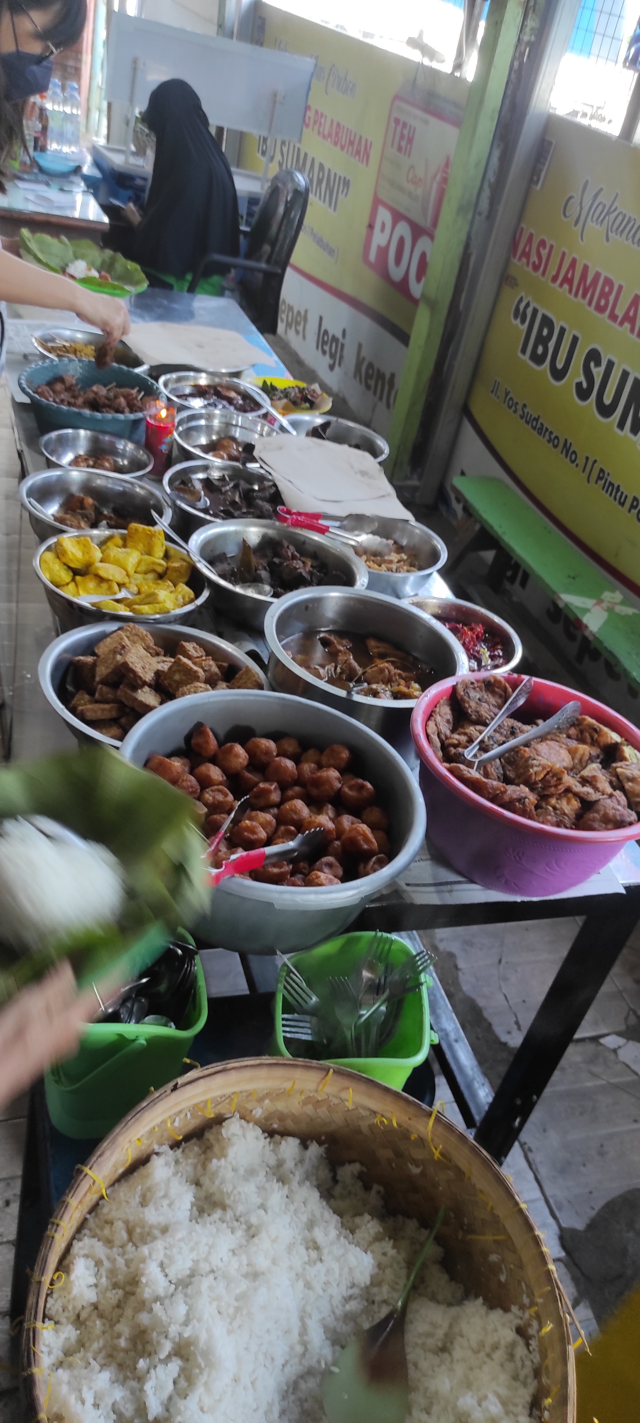 Nasi Jamblang yang biasa saya kunjungi sejak jaman saya sekolah adalah di kawasan pelabuhan, saya juga pernah sharing soal nasi Jamblang ini dipostingan blog Naturality Channel. Saya pikir siang begini akan tutup, tapi ternyata tidak malah ini kesempatan mencari cuan, karena banyak umat sepulang gereja yang mampir atau memang menyempatkan jalan kulineran.